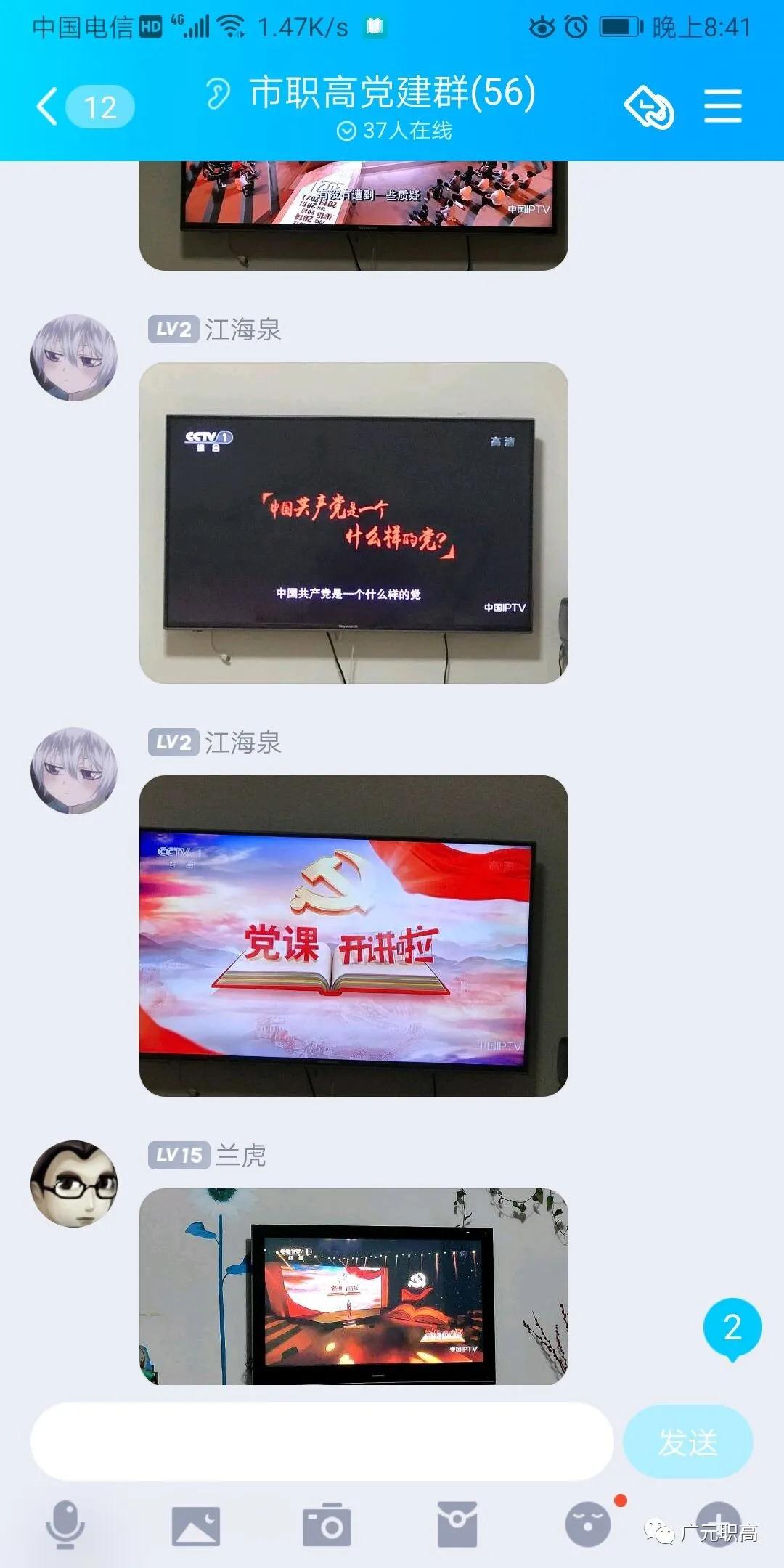 广元职高各支部积极组织党员收看中组部10月16日晚8点在中央1台开播的“党课开讲啦!”《党的光辉历程》。全体党员在周末通过各种形式自觉主动收看这堂生动的党课,通过党课学习大家深受教育与启发。