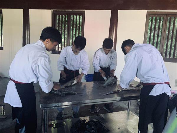 7月1、2日,受广元市文旅集团和广元市女皇味道餐饮公司邀请,广元菜研究院牵头人、广元市名师王菲带领广元职高烹饪专业学生参加“2019凤街美食节”白龙湖有机鱼烹饪制作。