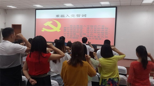 党课报告开始前,市教育局人事科罗朝科长作了指导讲话,着重强调了领导干部讲“三严三实”专题党课的重大意义和要求。随后,全体党员同志在王杰光书记的领誓下重温了入党誓词。
